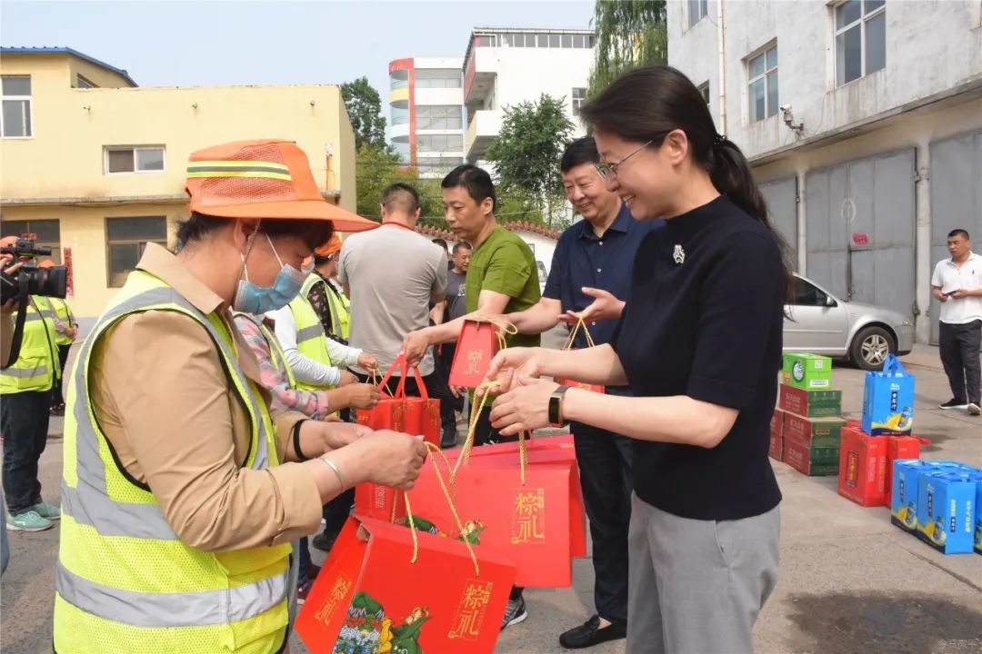 6月11日,市委宣传部联合团市委、市妇联以及爱心企业,开展了“永远感党恩 端午送清凉”慰问活动,为工作在一线的城管、环卫工人及交警送上粽子、矿泉水、凉茶饮品、黄梨汁等节日慰问品,并叮嘱大家在工作中注意安全,做好高温防护工作。